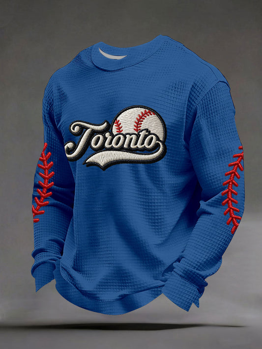 Men's Toronto Baseball Waffle Print Casual T-Shirt