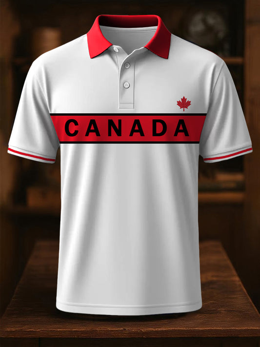 Retro Canadian Flag Patch Casual Polo Shirt