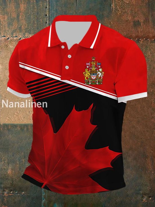 Men's Canada Print Casual Button T-Shirt
