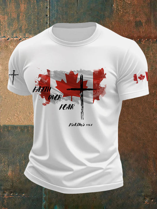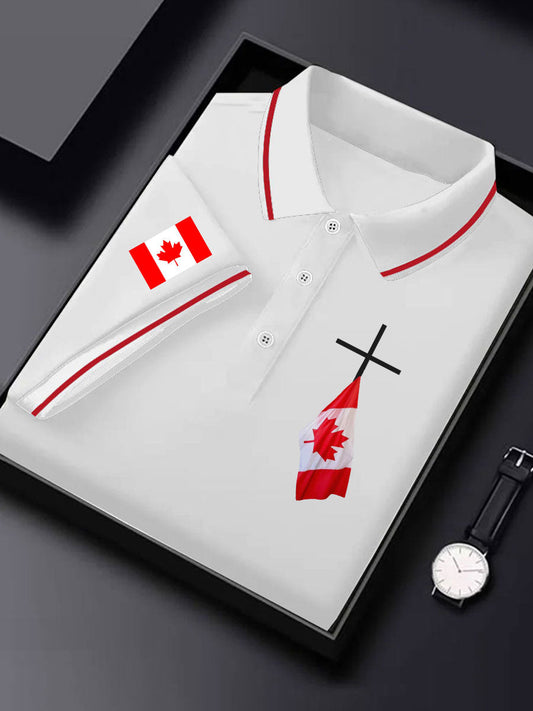 Men's Canadian Flag Cross Print Button Top