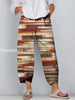 Boho Stripes Print Art Cropped Casual Cotton Pants