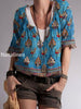 CWomen`s Hippie Pattern Print Cotton Blend V-Neck Top