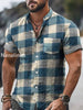 Men`s Retro Style Plaid Print Cotton Casual Short Sleeve Shirt