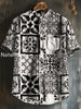 Men`s Vintage Style Patterm Print Cotton Casual Short Sleeve Shirt
