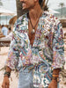 Men's Boho Style Perlis Floral Print Art Casual Cotton Shirt