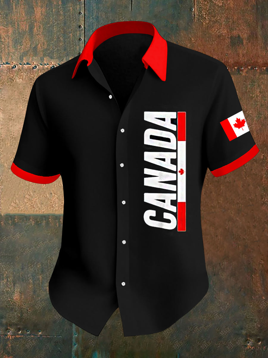 Men's Canada Day Badge Print Short Sleeve Shirt
