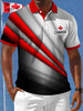 Men's Canadian Maple Leaf Stripe Spliced Printed Casual Business Polo Shirt