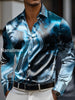 Men's Vintage Blue Marbled Print Premium Satin Long Sleeve Shirt