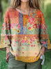 Retro Boho Floral Print Round Neck Pattern Vintage Loose Long Sleeve Top