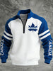 Retro Canadian Hockey Team Patchwork Casual Waffle Knit Pullover