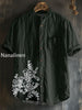 Unisex Boho Style Birds Print Cotton Casual Short Sleeve Shirt