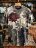 Unisex Retro Dark Ink Floral Print Casual Loose Short Sleeve T-Shirt