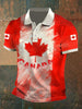 Vintage Canada Abstract Maple Leaf Flag Print Casual Polo Shirt
