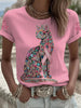 Women's Breast Cancer Cat Printed Vintage Fashion Loose Short Sleeve T-Shirt