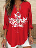 Women's Cana Abstract Animal Maple Leaf Art Print Casual V-Neck Top