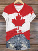Women's Canadian Flag Maple Leaf Print Casual V-Neck Tee