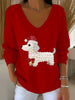 Women's Christmas Dog Art V-Neck Ribbed Top