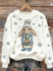 Women's Cute Winter Rabbit Print Casual Flannel Sweatshirt