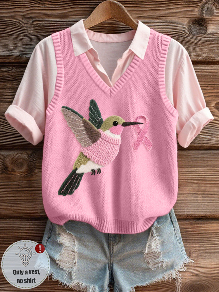 Women's Felt Art Hummingbird Pattern Cozy Knit Vest