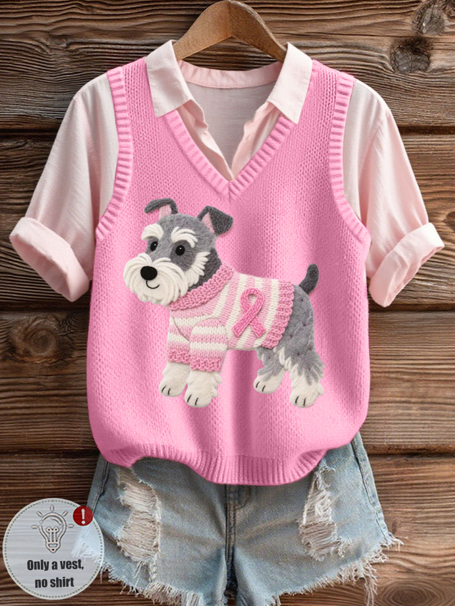 Women's Felt Art Schnauzer Dog Pattern Cozy Knit Vest