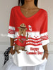 Women's Happy Canada Day Canadian Flag Maple Leaf Beaver Print Casual Top