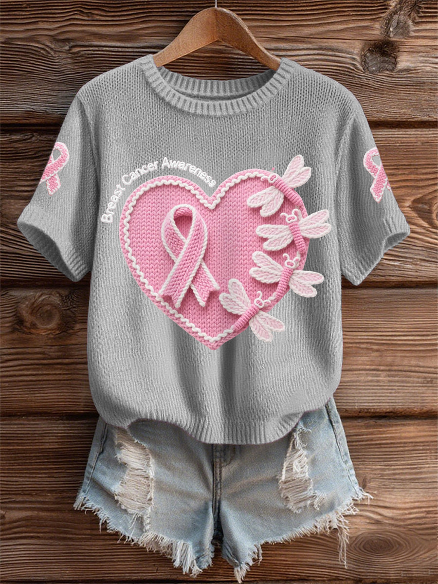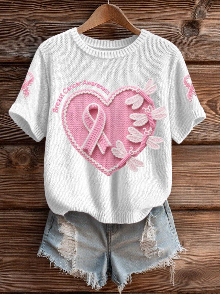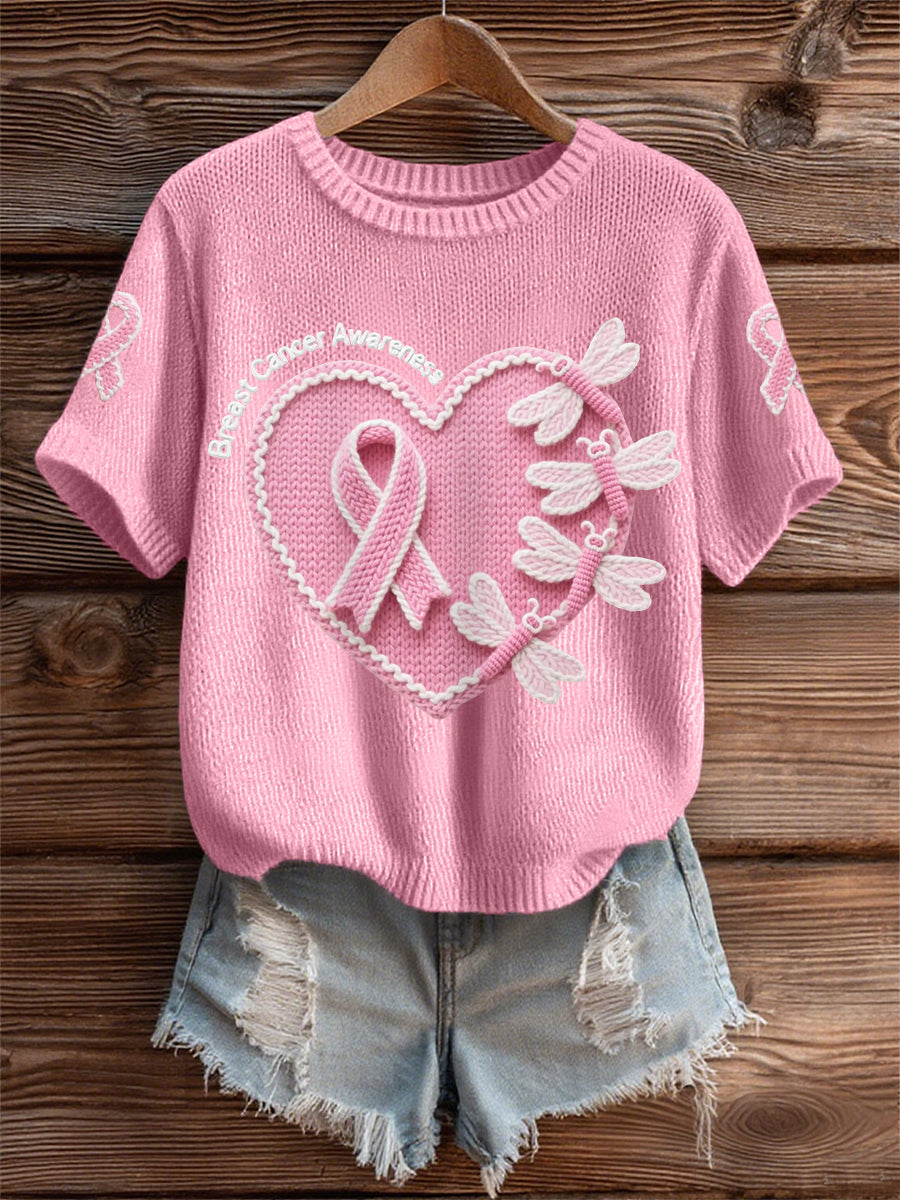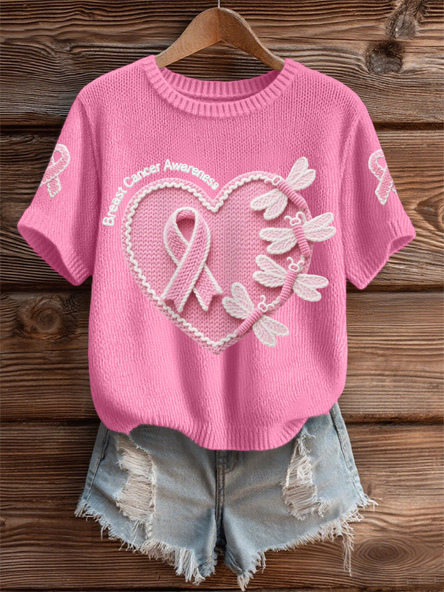 Women's Pink Dradonflies Pink Ribbon Breast Cancer Awareness Support Tee