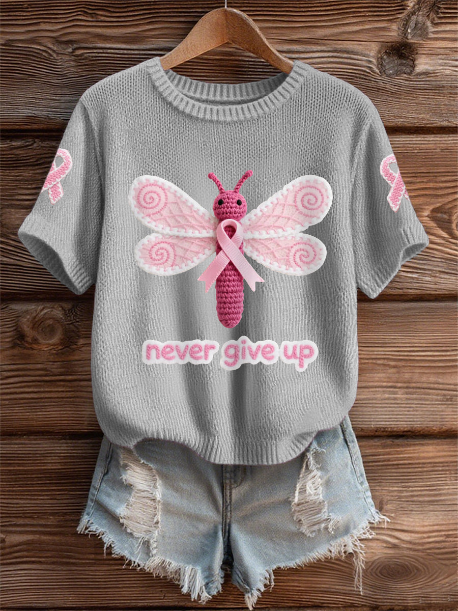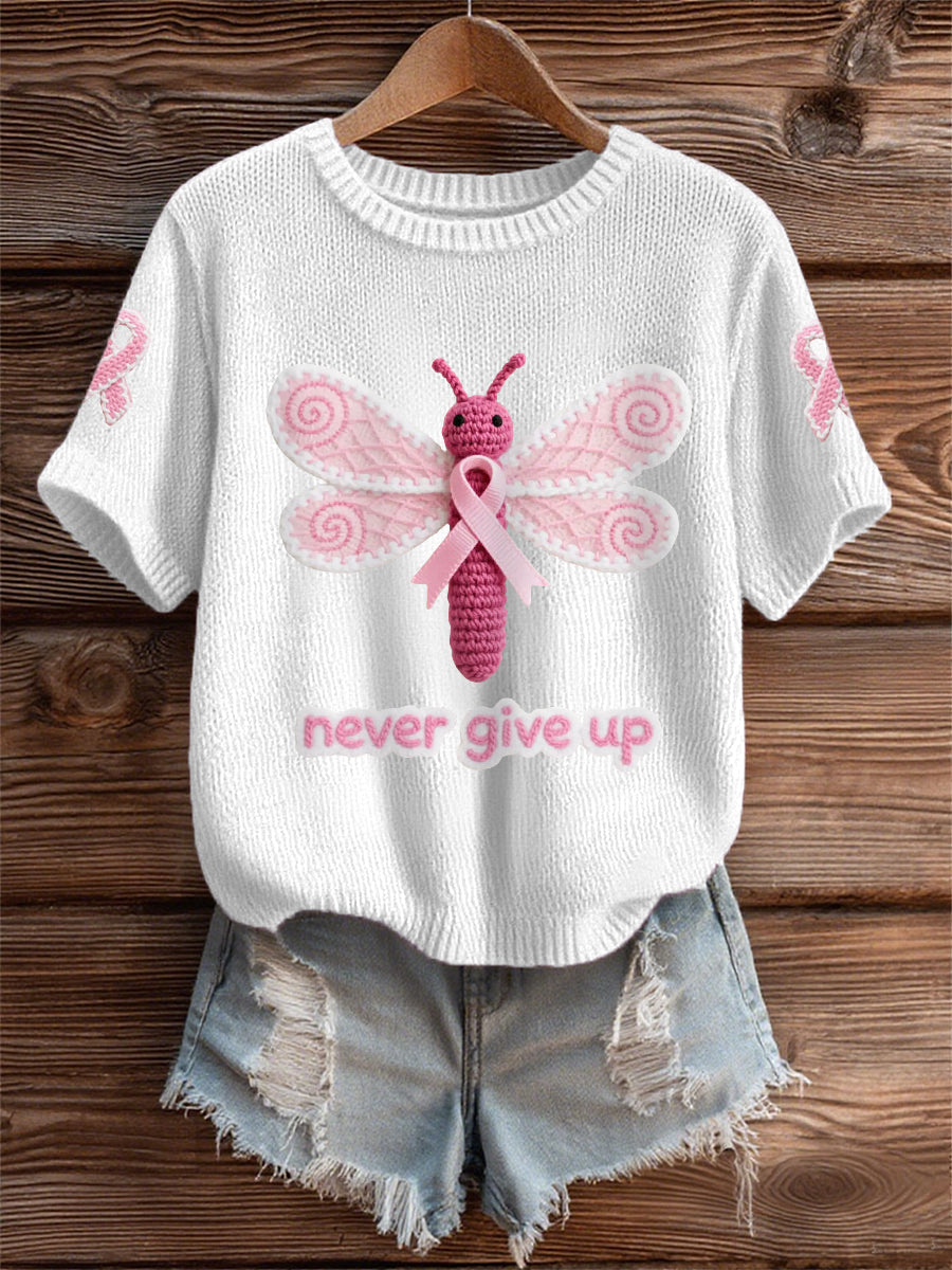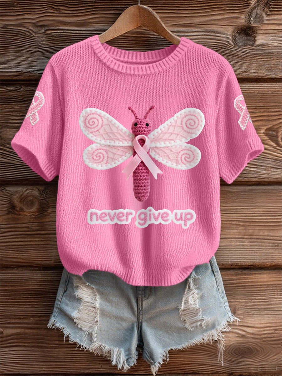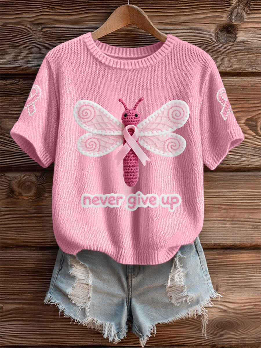 Women's Pink Dragonfly Pink Ribbon Breast Cancer Awareness Support Tee