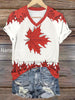 Women's V-neck Happy Canada Day Canadian Maple Leaf Print Casual T-shirt
