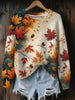 Women's Vintage Autumn Fallen Thanksgiving Print Art Casual Knitted Sweater