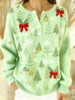 Women's Vintage Christmas Tree Bow Print Long-sleeve Sweater