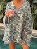 Women's Vintage Floral Art Print V-Neck Casual Pullover Sweater