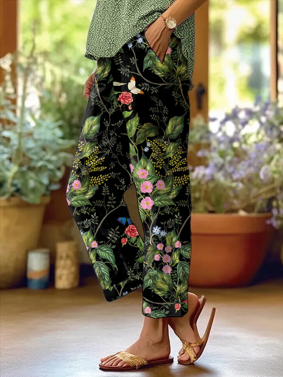 Women's Vintage Floral Print Casual Pants