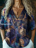 Women's Vintage Plaid Art Print V-Neck Casual Cotton And Linen Top